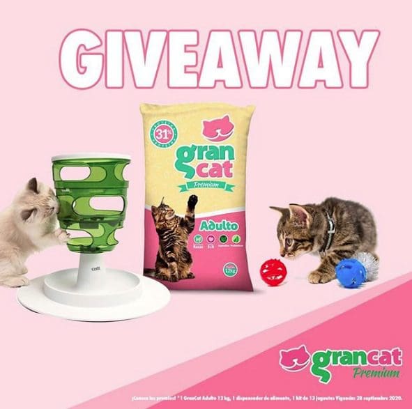 Gran Cat Mx te invita a participar a su concurso en el que podrás ganar un kit con juguetes, alimento y dispensador para tu mascota, si quieres ser ganador realiza la mecánica siguiente: