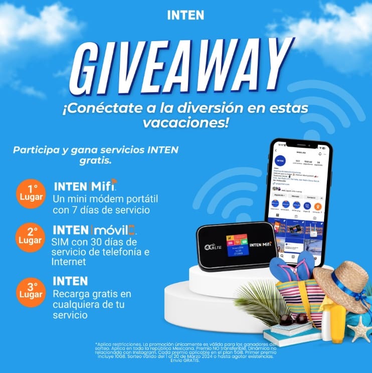 Inten te invita a participar a su concurso en el que podrás ganar un mini módem y servicio de internet gratis, si quieres ser ganador realiza la mecánica siguiente:
