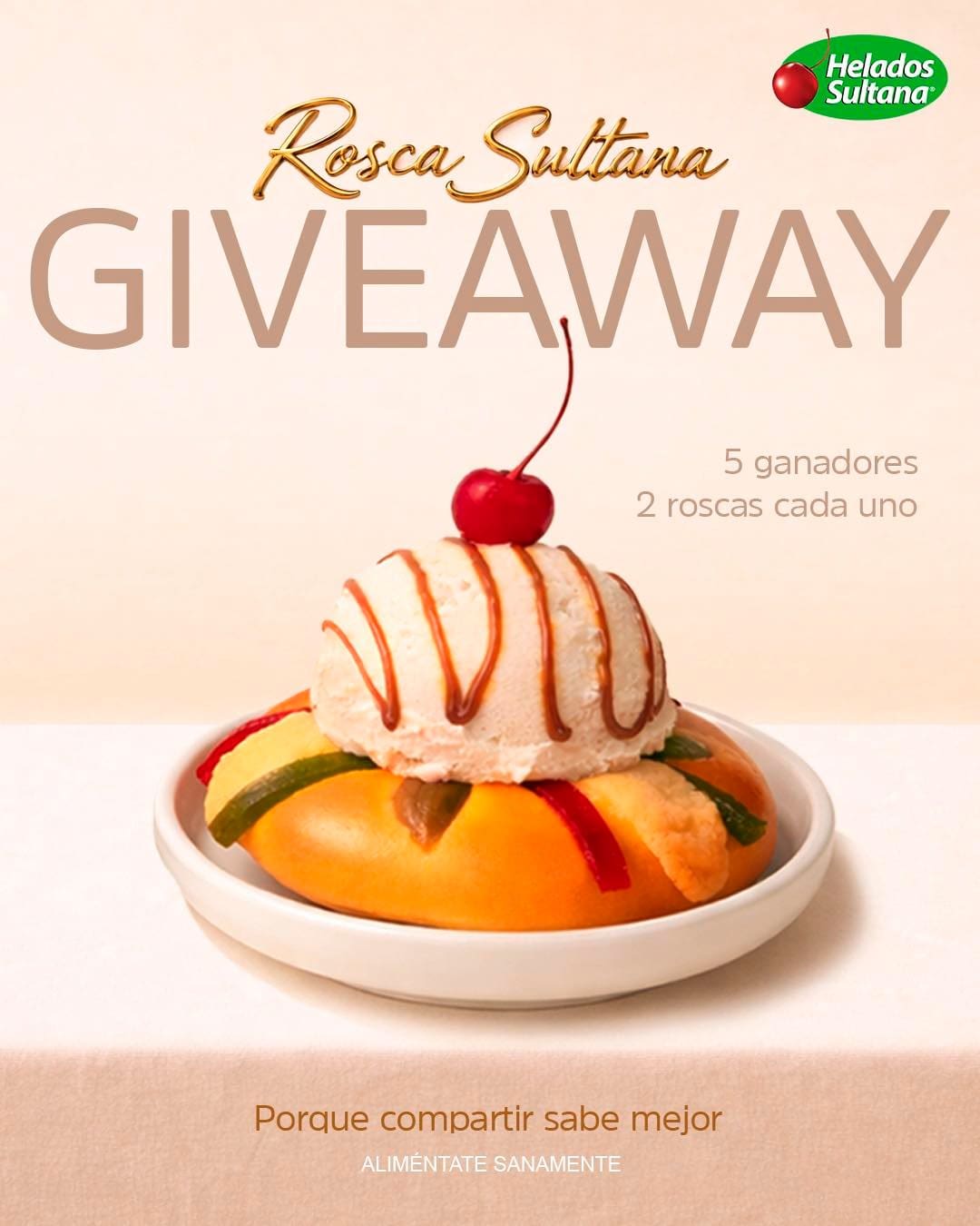 Helados Sultana regalará a los participantes ganadores: Un premio de 2 roscas Sultana a cada ganador.