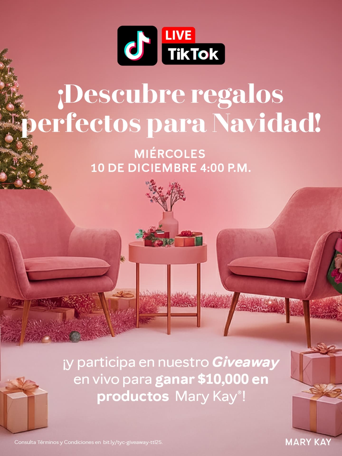 Mary Kay anunciará al participante ganador los días correspondientes (10 y 17 de diciembre de 2025) a través del mismo live.