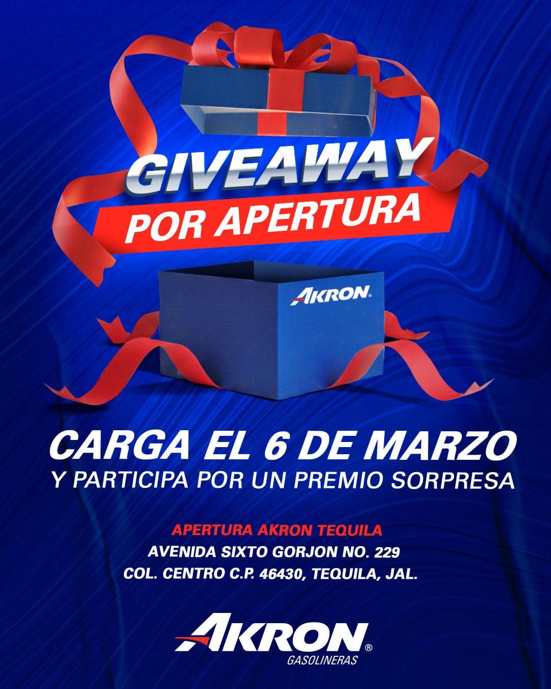 Realiza una carga de gasolina en la nueva gasolinera Akron Tequila este 6 de marzo de 2026 y conserva tu ticket de carga. Toma una foto de tu ticket, compártela los comentarios de la publicación del concurso y cuenta a dónde irás con tu tanque lleno.