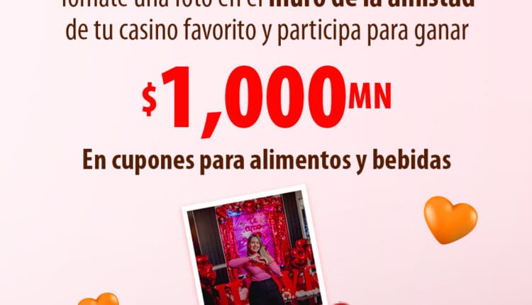 Ve al Muro de la Amistad de tu sala favorita de Caliente Casino, tómate una foto y gana $1,000 en cupones de alimentos y bebidas