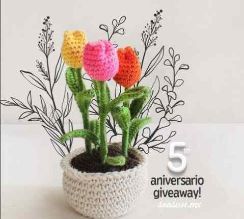 Seasun regalará al participante ganador: Una macetita de tulipanes de crochet.