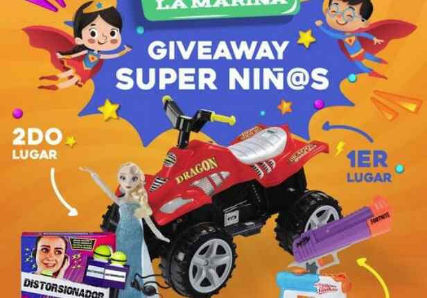La Marina Tienda te invita a participar a su concurso Súper Niños en el que podrás ganar una moto eléctrica, muñeca Frozen y más, si quieres ser ganador realiza la mecánica siguiente: