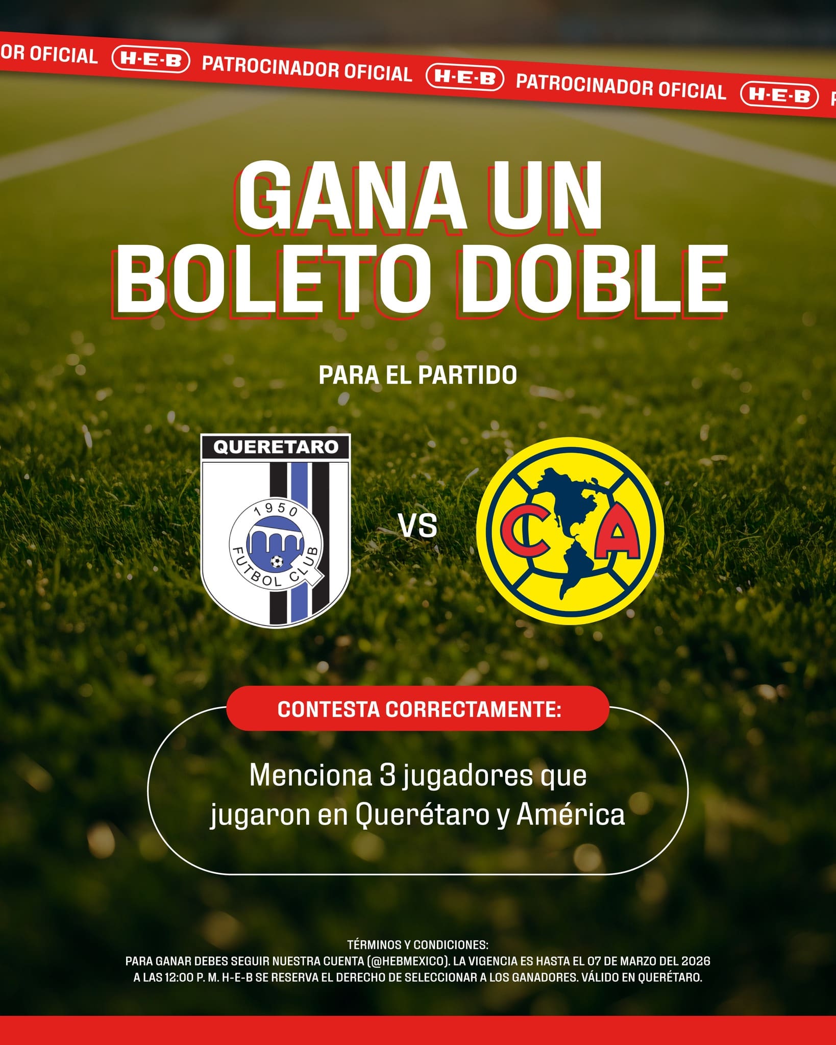 HEB México regalará a los participantes ganadores: Un pase doble para asistir al partido Querétaro vs América.