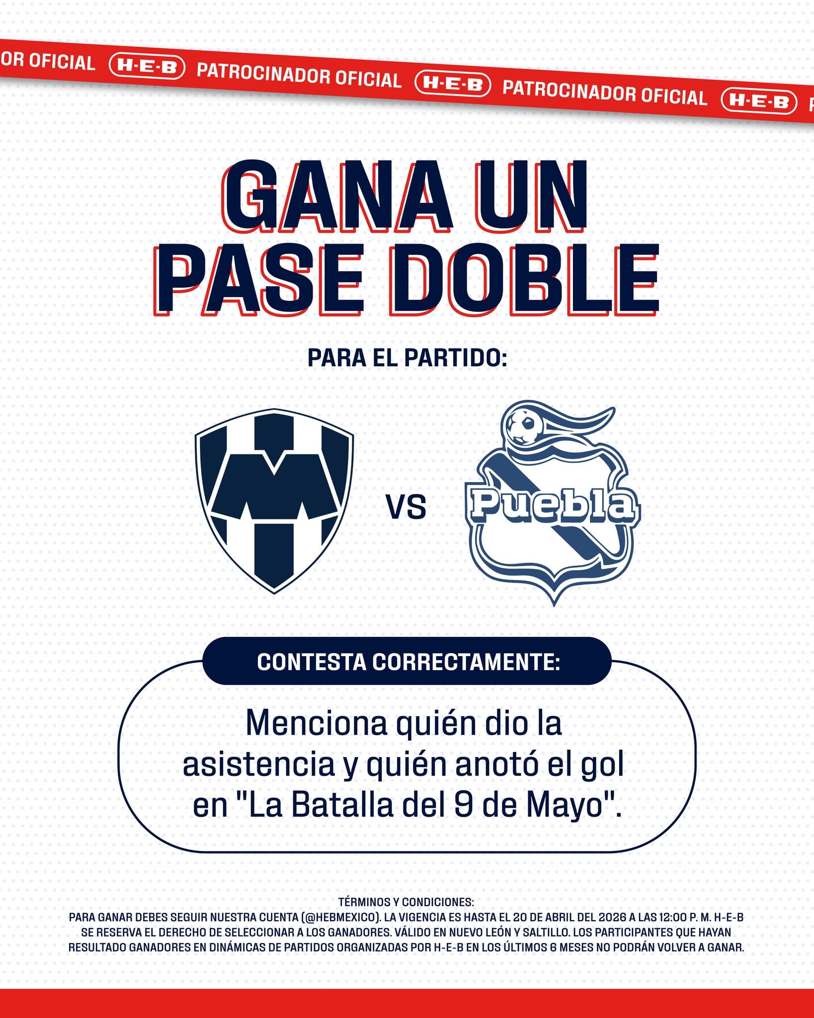 HEB México regalará a los participantes ganadores: Un pase doble al partido de Rayados de Monterrey vs Puebla.