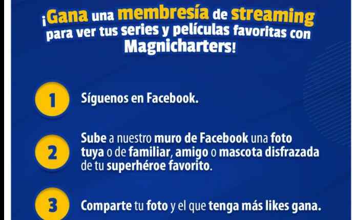 Magnicharters te invita a participar a su concurso en el que podrás ganar una membresía de streaming por todo un año, si quieres ser ganador realiza la mecánica siguiente: