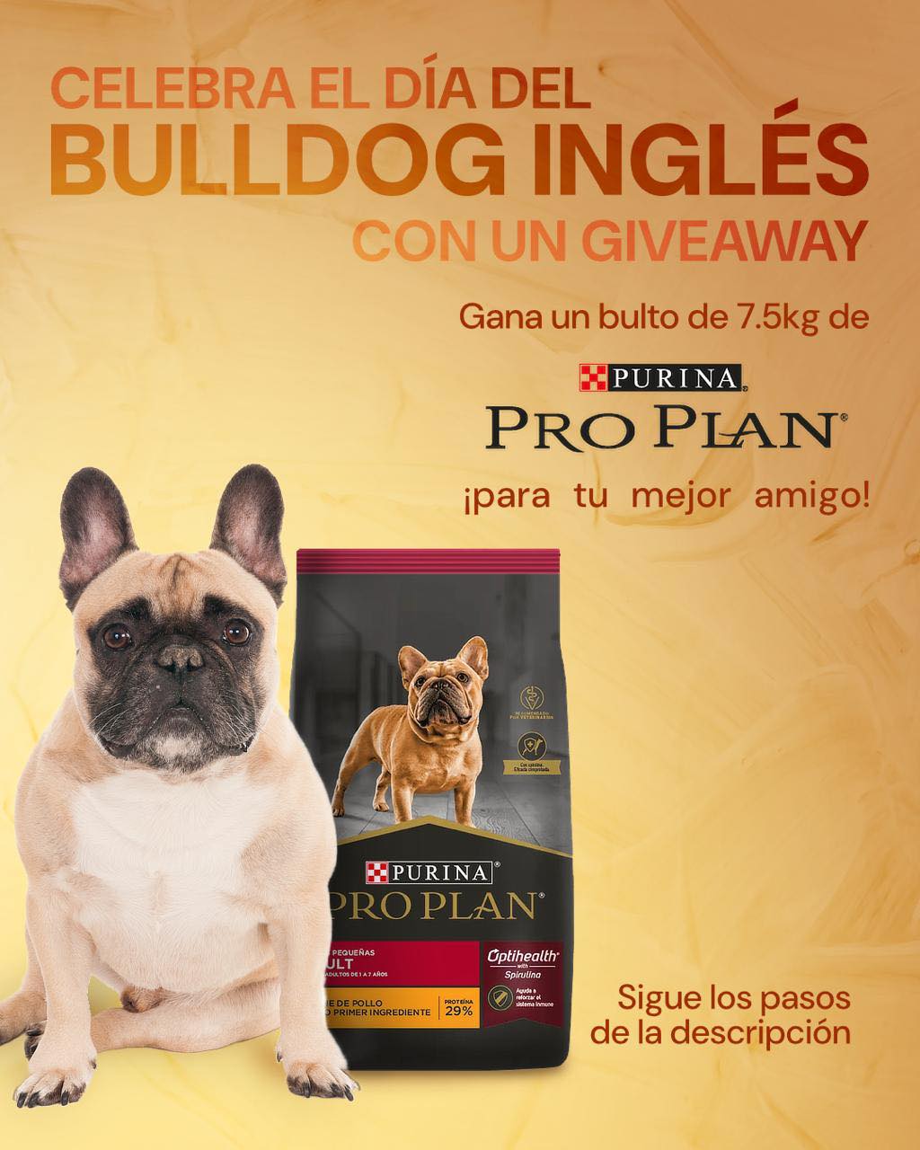 Maskota te invita a participar a su concurso Día del Bulldog Inglés en el que podrás ganar un bulto de comida ProPlan, si quieres ser ganador realiza la mecánica siguiente: