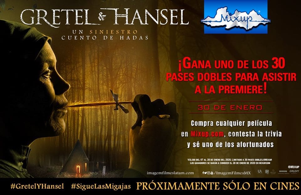 Mixup regalará a los participantes ganadores: 30 pases dobles para la premier de la película Gretel y Hansel el día 30 de enero de 2020 a las 20:00 horas