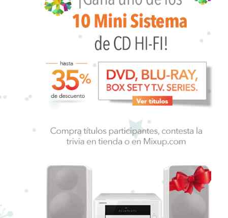 Compra en Mixup productos del mueble Gana un mini sistema HI-FI, registra tu ticket, contesta la trivia y gana uno de los 10 Mini Sistema de CD HI-FI