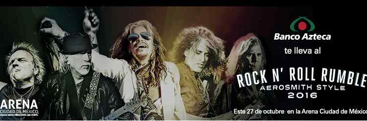 Banco Azteca te lleva al Rock and Roll Rumble concierto de Aerosmith este 27 de Octubre del 2016 en la Arena Ciudad de México, para ser uno de los ganadores realiza los siguientes pasos: