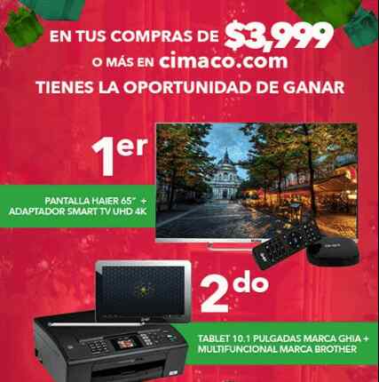 Inresa a la página de Facebook de Cimaco y dale like, realiza una compra mínima de $3,999.00 pesos a través de Cimaco.com entre los días 16 y 22 de Diciembre del 2016.