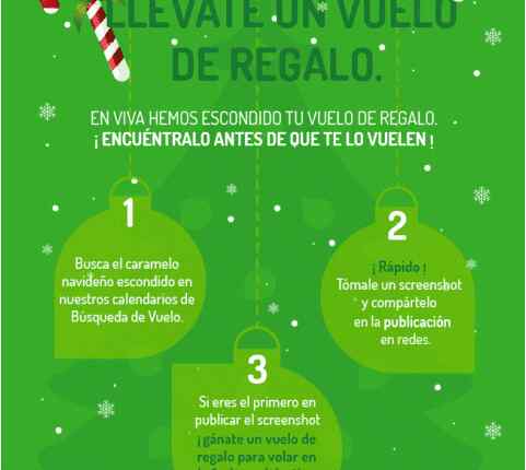 Ingresa al portal del concurso en https://blog.vivaaerobus.com/2016/12/22/encuentra-una-dulce-navidad/, busca el caramelo navideño escondido en los calendarios de búsqueda de vuelo de viva Aerobus.