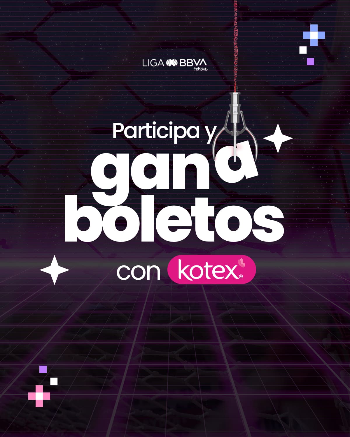 Kotex y Liga BBVA Femenil te invitan a participar a su concurso en el que podrás ganar boletos a partidos de la Liga BBVA MX Femenil, si quieres ser ganador realiza la mecánica siguiente: