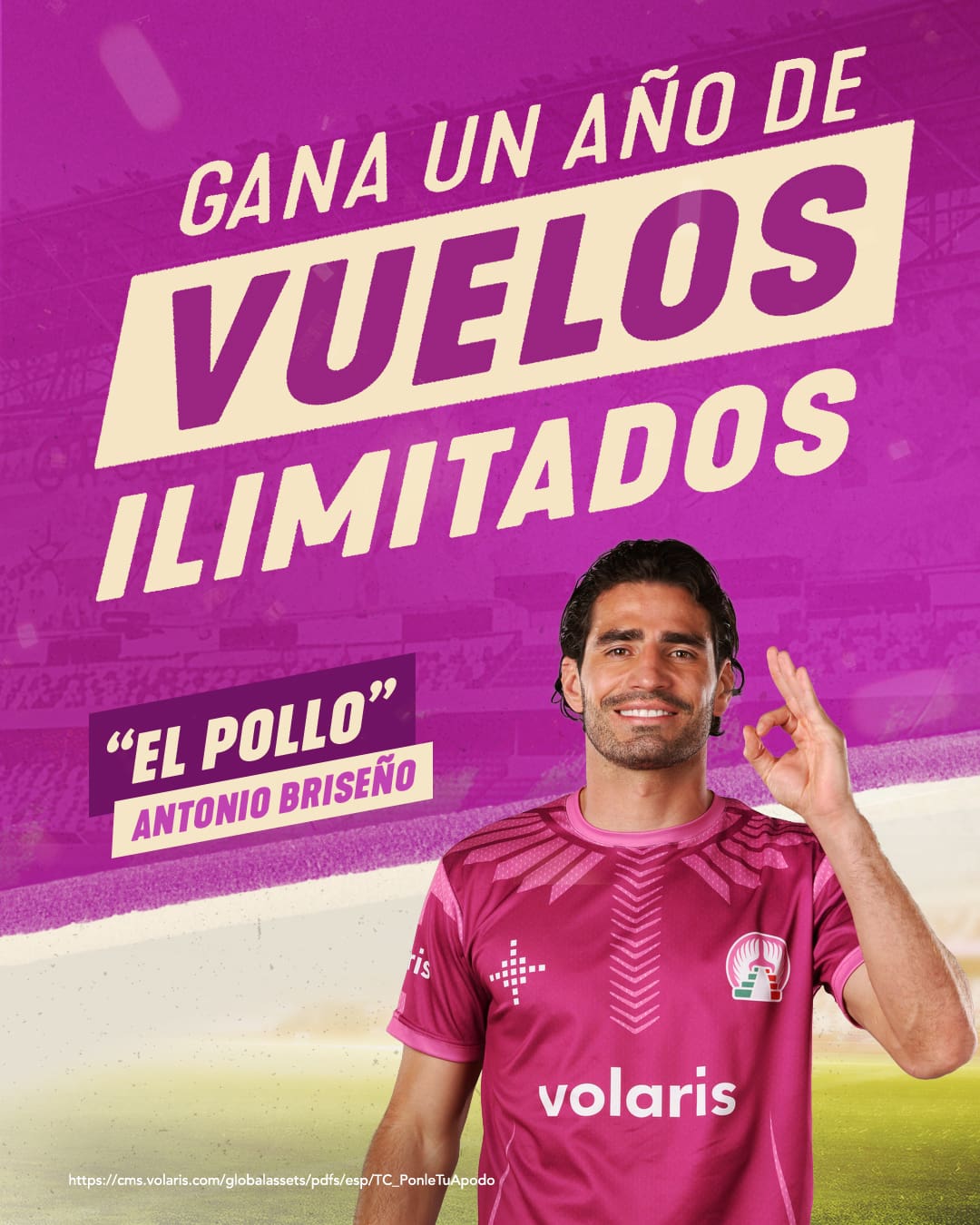 • El derecho a que su apodo aparezca impreso en el exterior de una aeronave seleccionada unilateralmente por Volaris.
