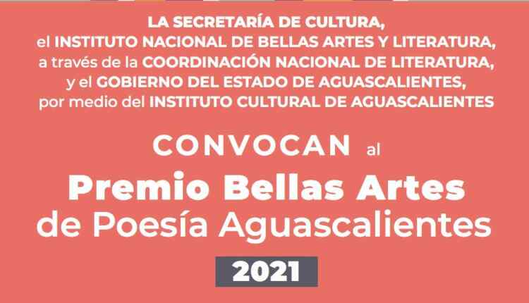 La Secretaría de Cultura, el Instituto Nacional de Bellas Artes y Literatura, a través de la Coordinación Nacional de Literatura, y el Gobierno del Estado de Aguascalientes, te invitan a participar a su concurso Premio Bellas Artes de Poesía Aguascalientes 2021 en el que podrás ganar premio de $500,000 pesos, si quieres ser ganador realiza la mecánica siguiente: