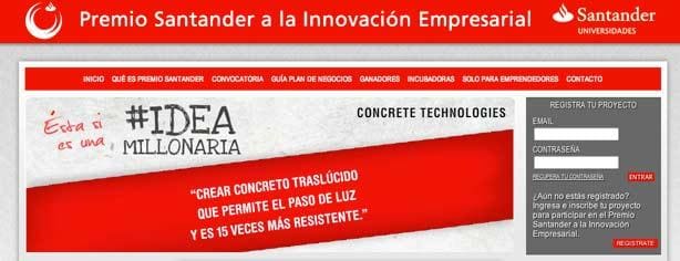 - Banco Santander, el Consejo Coordinador Empresarial y la Anuies convocan a los jóvenes a participar en su concurso VIII Premio Santander a la Innovación Empresarial 2012-2013 en donde hay un millón seiscientos mil pesos a repartir y la oportunidad de asistir al Babson College, en Estados Unidos, a un programa especializado en el desarrollo de empresas.