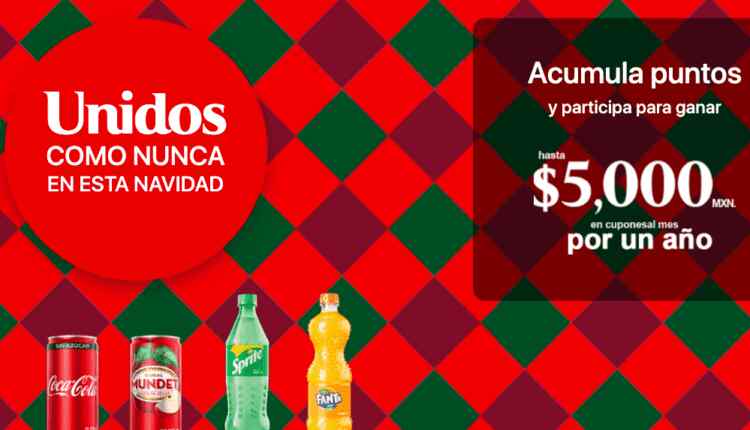 Coca-Cola te invita a participar a su concurso Unidos como Nunca esta Navidad 2020 en el que podrás ganar $5,000.00 al mes por 1 año, si quieres ser ganador realiza la mecánica siguiente: