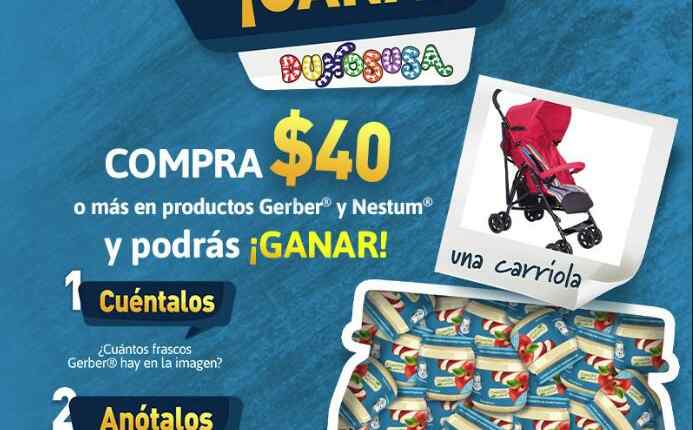 Compra $40 de productos Geber o Nestum, cuenta cuántos frascos Gerber haya en la imegn y gana una de las 50 carriolas para bebé