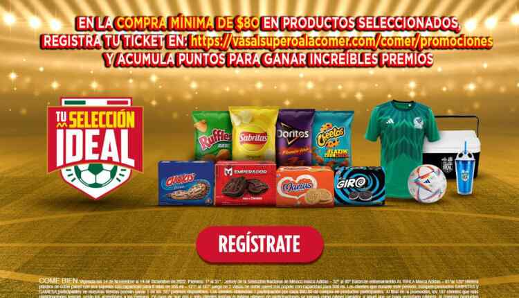 La Comer, Sabritas y Gamesa te invitan a participar a su concurso Tu Selección Ideal en el que podrás ganar jerseys, balones y hieleras, si quieres ser ganador realiza la mecánica siguiente: