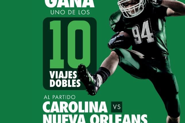Compra $600, registra tu ticket y gana viaje al partido de NFL Carolina vs Nueva Orleans