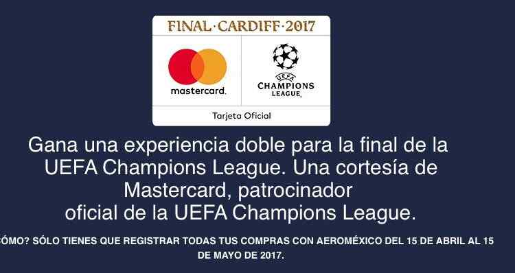 Aeroméxico y Mastercard te invitan a participar en su concurso en el que podrás ganar viaje a la Final de la Champions League 2017, si quieres ser ganador realiza la mecánica siguiente: