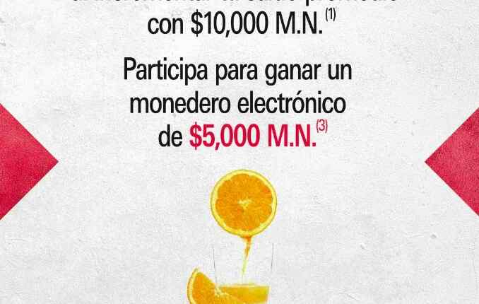 Por cada $10,000 de ahorro participas para ganar monederos electrónicos de $5,000