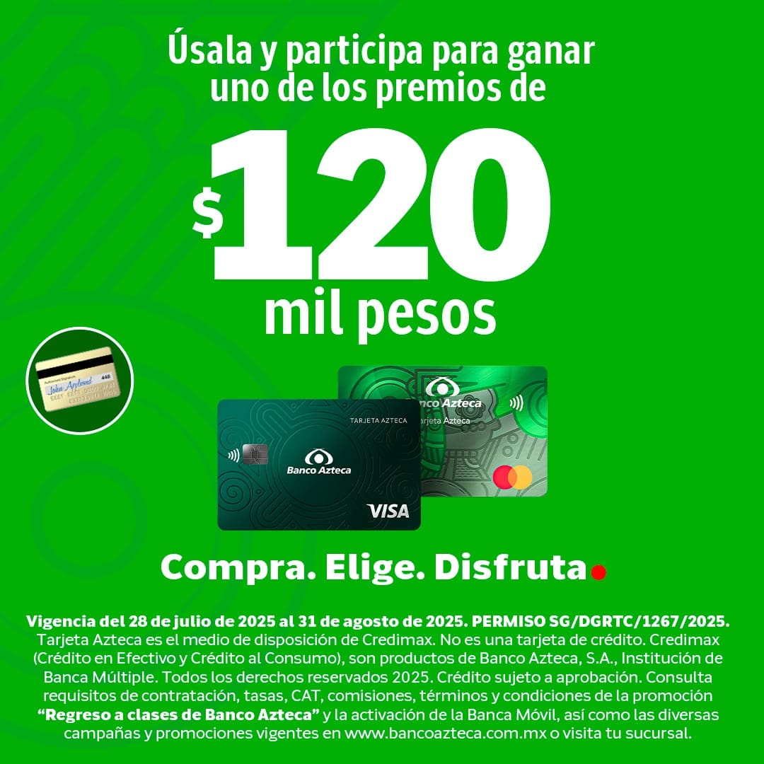 Usa tu tarjeta Azteca y gana 1 de 16 premios de $120,000