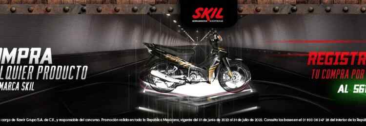 Realiza una compra de cualquier producto de la marca Skil entre el 1 de junio y el 31 de julio de 2022. Registra tu ticket de compra junto con tus datos de contacto vía WhatsApp al número 56 1377 7010.