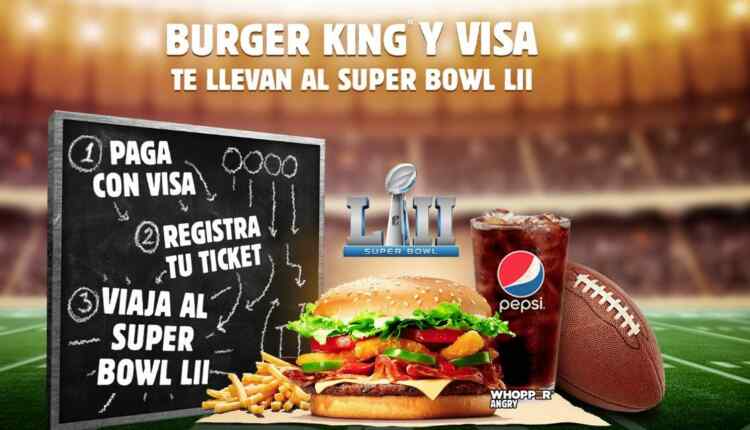 Burger King y Visa te invitan a participar a su concurso en el que podrás ganar viaje al Super Bowl LII, si quieres ser ganador realiza la mecánica siguiente: