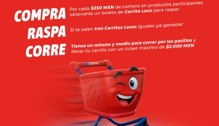 Calimax te invita a participar a su concurso Carrito Loco 2025 en el que podrás ganar 1:30 minutos para llenar tu carrito, si quieres ser ganador realiza la mecánica siguiente: