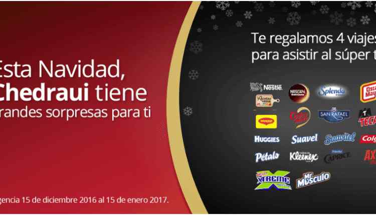 Acude a tu tienda Chedraui y realiza una compra mínima de $300 en productos participantes (Recetas Nestle, Maggi, Nescafé, Coffee mate, Splenda, San Rafael, Oscar Mayer,Tecate,Chips, Takis, Huggies, Pétalo, Suavel, Kleenex, Suavitel, Axion, Caprice, Colgate, Xtreme, Glade, Mr Musculo)
