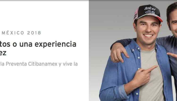 Compra tus boletos para El Gran Premio de México 2018 durante la preventa Citibanamex tarjetas de Débito y Crédito Citibanamex (excepto privadas y corporativas), ingresa a https://www.banamex.com/checo/ y registra los datos solicitados: nombre completo, estado de residencia, número de cliente, email y teléfonos de contacto