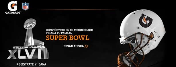 - Gatorade y supermercados Soriana presentan su promoción Juega con Gatorade, con la que podrás ganar uno de los 2 viajes dobles al Superbowl este 5 de febrero.