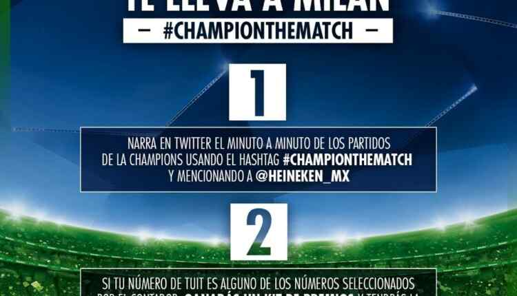 Para participar entra a tu cuenta de Twitter y narra el minuto a minuto de los partidos de la Champions League usando el hashtag #ChampionTheMatch y etiquetando a @Heineken_Mx
