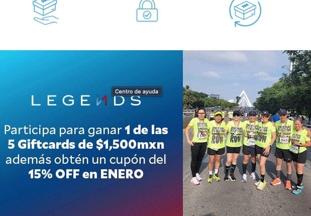 Realiza tu primer compra como usuario Legends y gana una de las 5 giftcards de $1,500