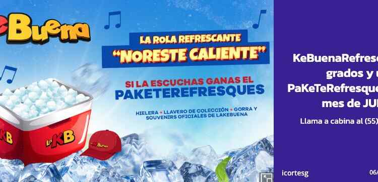 Ke Buena te invita participar a su concurso La Rola Refrescante en el que podrás ganar un PaketeRefresques con hielera y souvenirs, si quieres ser ganador realiza la mecánica siguiente: