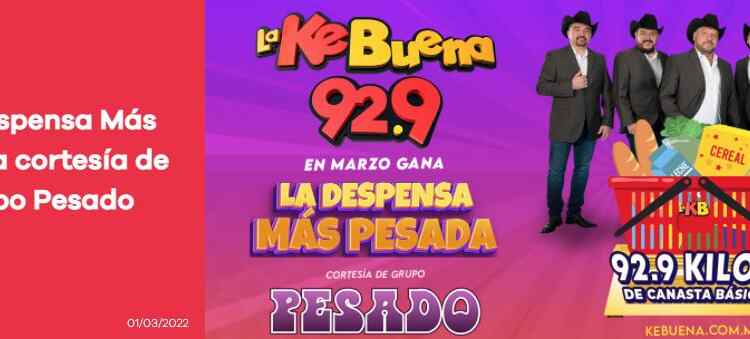 KeBuena y Grupo Pesado te invitan a participar a su concurso La Despensa más Pesada en e que podrás ganar despensa de 92.9 kg, si quieres ser ganador realiza la mecánica siguiente: