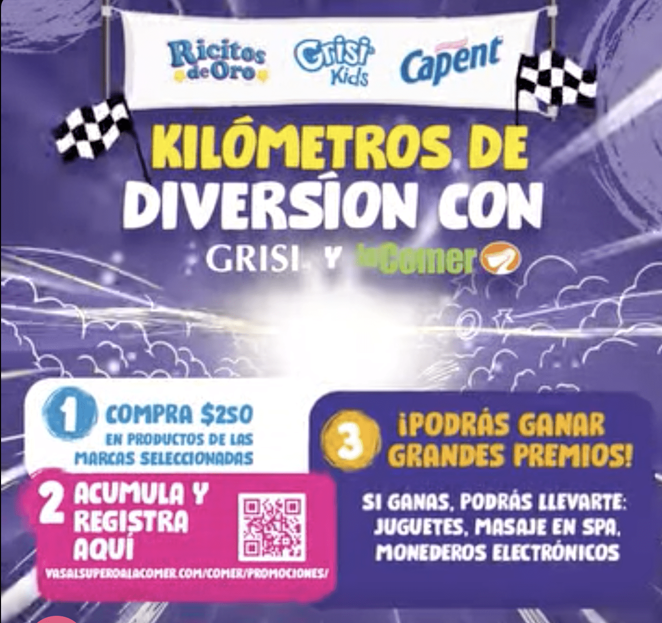 La Comer y Grisi te invitan a participar a su concurso Kilómetros de Diversión en el que podrás ganar paquetes de juguetes y muchos premios más, si quieres ser ganador realiza la mecánica siguiente: