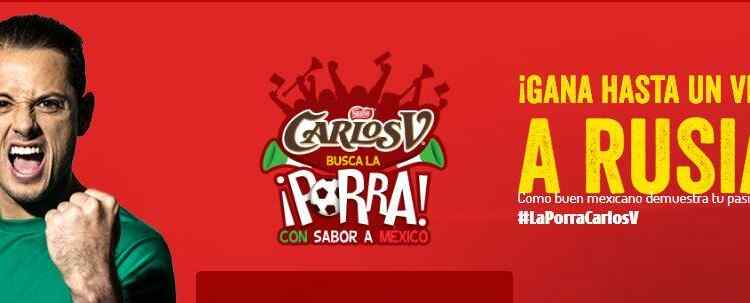 Participa en la nueva promoción La Porra Carlos V Chicharito y podrás ganar grandes premios como pantallas, home theaters, futbolitos, kits o hasta uno de los viajes al Mundial de Rusia 2018.