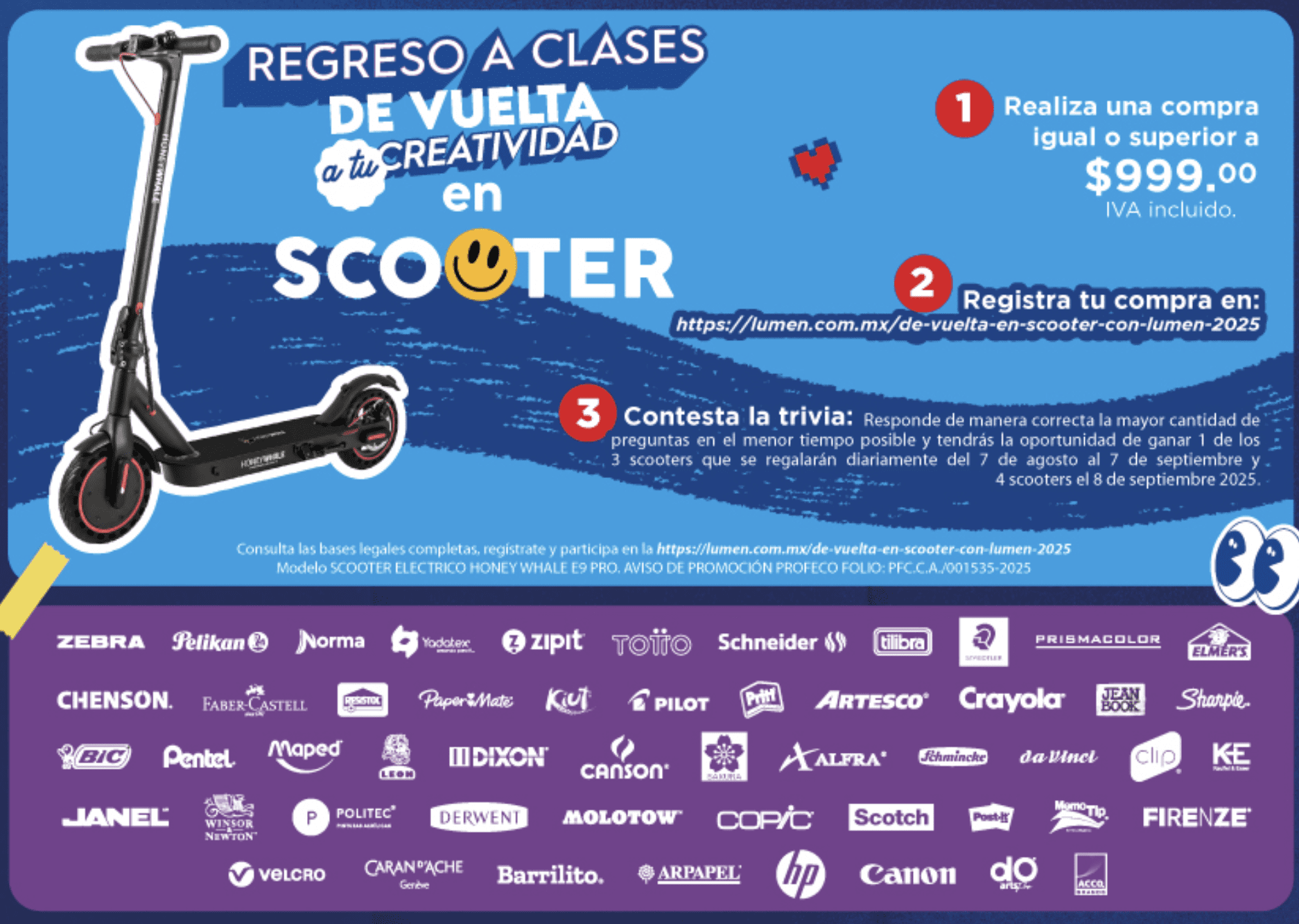 Lumen te invita a participar a su concurso Regreso a Clases en el que podrás ganar 1 de 3 scooters todos los días, si quieres ser ganador realiza la mecánica siguiente: