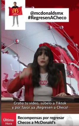 Podrán participar todas aquellas personas físicas mayores de edad que residan en Ciudad de México. Hazte seguidor del Tik Tok de @mcdonaldsmx, sube a tu cuenta un video en donde aparezcas regresando al Checo de Cartón a tu McDonald’s más cercano, usa el hashtag #RegresenACheco y etiqueta a @mcdonaldsmx.