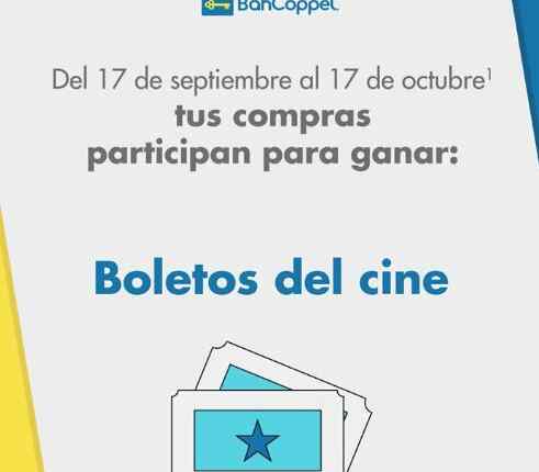 Clientes que realicen compras a partir de $200.00 y hasta $1,500.00 con tarjeta de crédito BanCoppel Clásica y/o tarjeta de crédito BanCoppel Oro, entre el 17 de septiembre y el 17 de octubre de 2021 podrían ganar una entrada doble al cine.