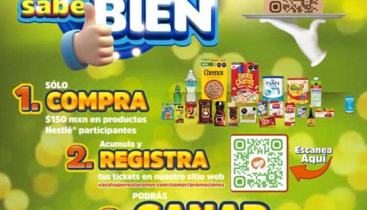 Realiza una compra de al menos $150.00 de productos Nestlé participantes en La Comer entre el 1 de febrero y el 31 de marzo de 2024. Cada $150.00 de compra en productos participantes Nestlé, aparecerá un cupón al final de tu ticket con un código para que lo registres en https://vasalsuperoalacomer.com/comer/promociones.