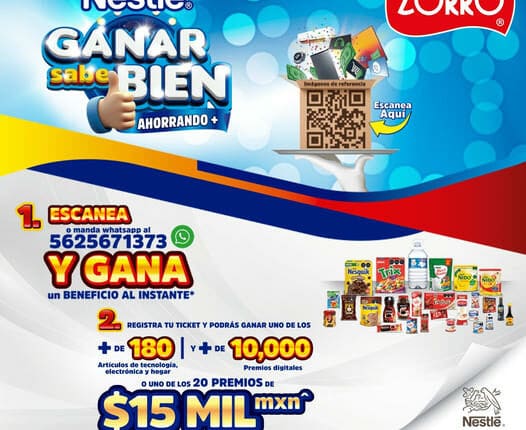 Nestlé y Zorro Abarrotero te invitan a participar a su concurso Ganar Sabe Bien Ahorrando más en el que podrás ganar estufas, freidoras de aire, cupones de descuento y más, si quieres ser ganador realiza la mecánica siguiente: