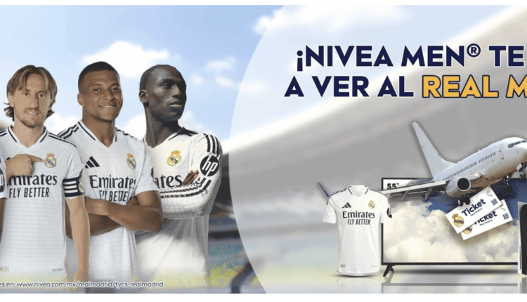 Nivea te invita a participar a su concurso Real Madrid 2025en el que podrás ganar viajes para ver al Real Madrid en vivo, pantallas, consolas y más, si quieres ser ganador realiza la mecánica siguiente:
