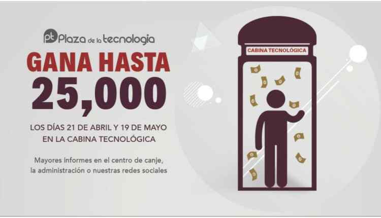 Realiza compras en la Plaza de la Tecnología, registra tus compras en la Cabina Tecnológica y gana hasta $25,000 pesos en la cabina tecnológica