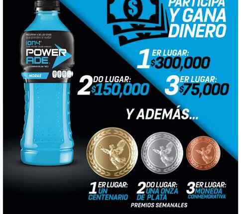 La promoción Power Ade compra, registra y gana reparte hasta $300,000 pesos y centenarios de oro cada semana.