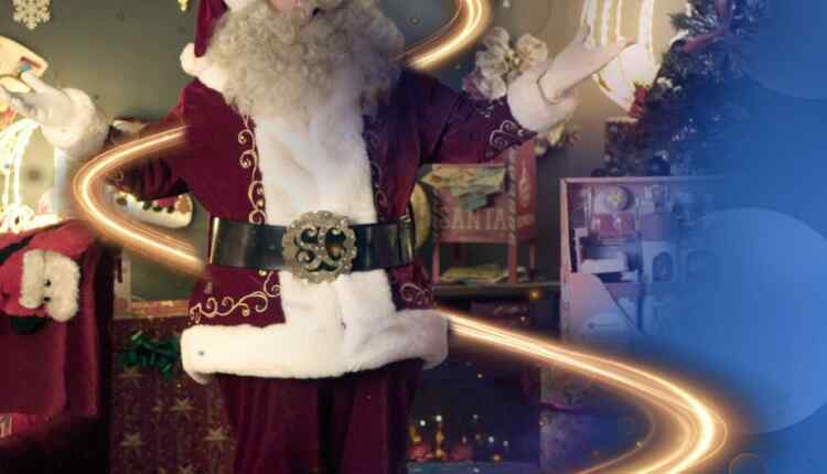 Video con la temática de una videollamada tripartita entre Santa Claus, Mamá Claus y Duende mágico.