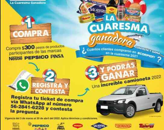Tienda Scorpion te invita a participar a su concurso Cuaresma 2022 en el que podrás ganar una camioneta VW Saveiro, si quieres ser ganador realiza la mecánica siguiente: